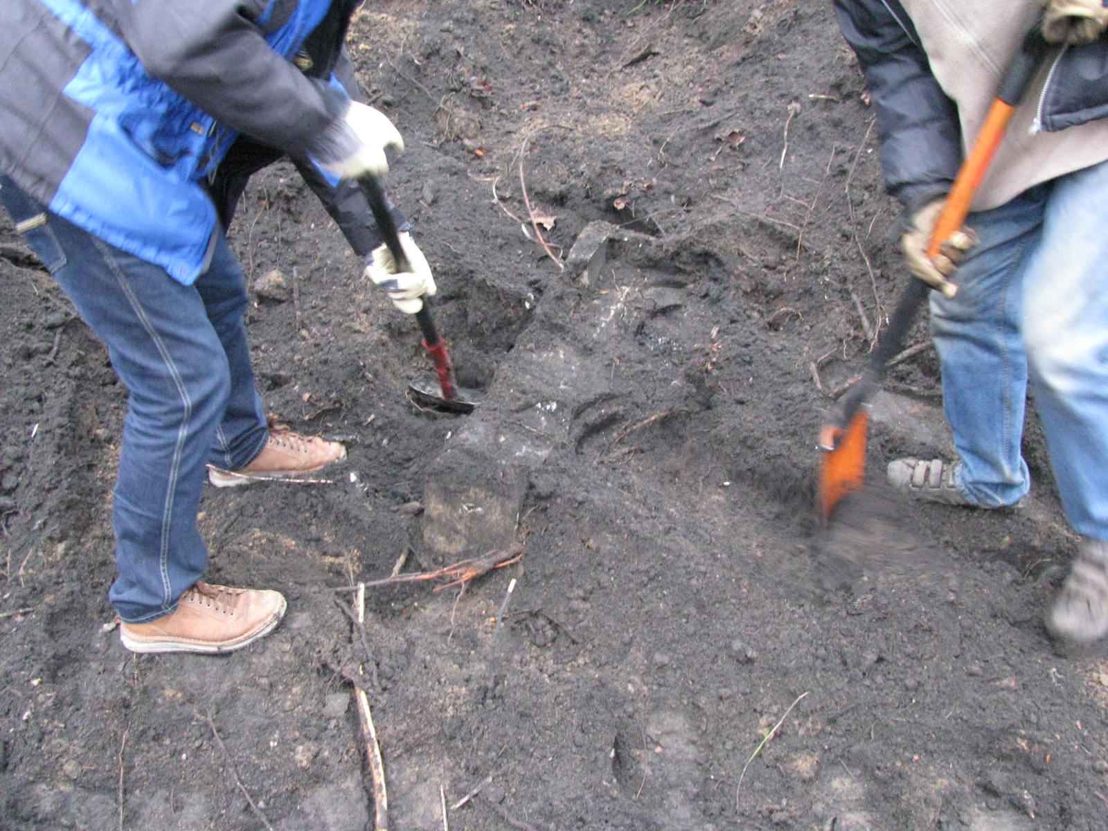 Prace wyglądają przy odkrywaniu mniej więcej tak. Łopata , grabki i miotełka... aż do ukazania się odkrywanego elementu.