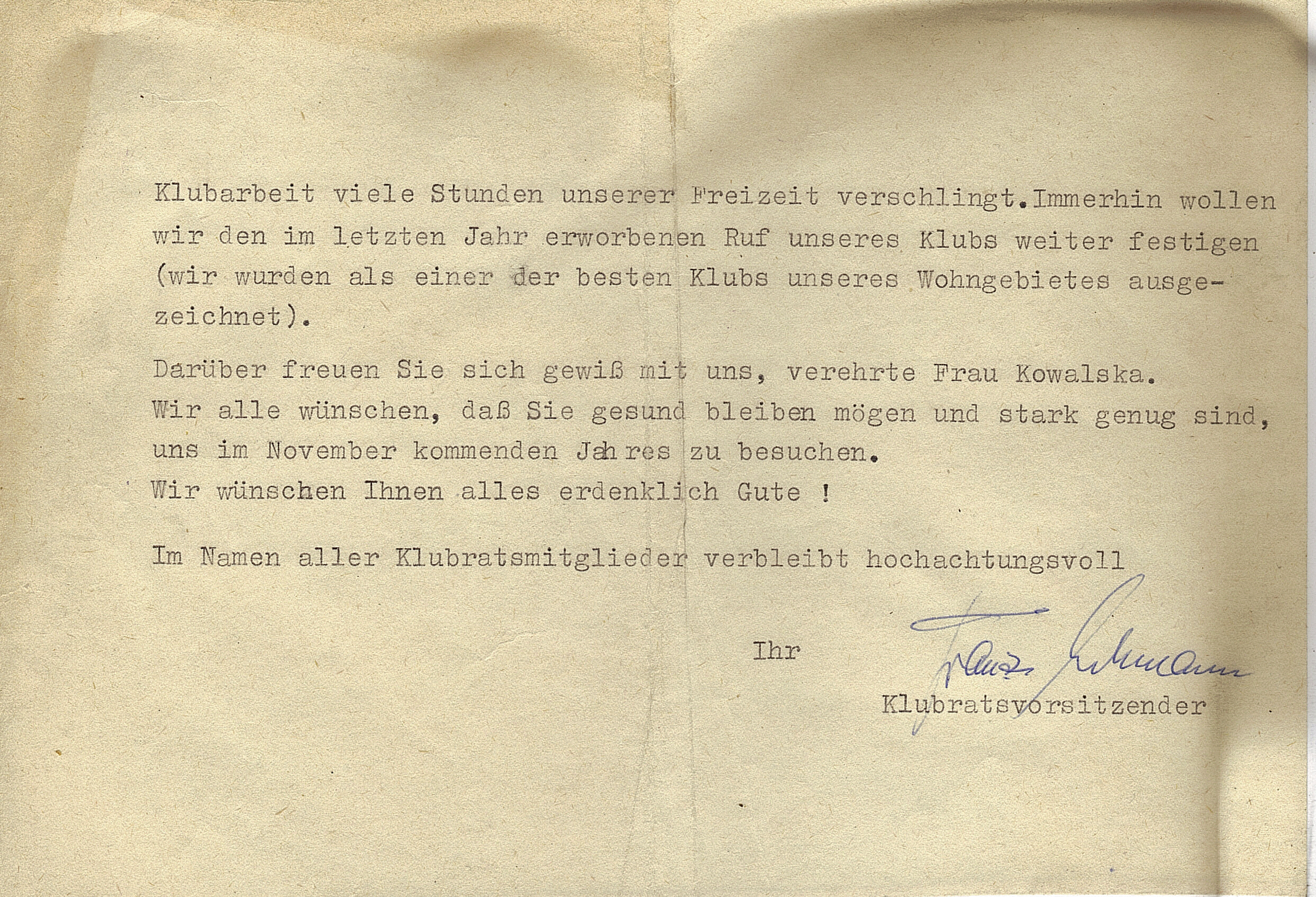 Am 15. November, dem Volkstrauertag, geht der eine oder andere vielleicht zum Alten Berliner Garnisonfriedhof, wo Militärs bestattet sind und Dichter und Opfer unruhiger Zeiten ruhen. Der Besucher kommt zu vier Grabreihen. Hier liegen mehr als tausend Opfer - sieben Tote teilen sich einen Quadratmeter. Massen im Massengrab brauchen wenig Platz. Und waren doch Menschen mit Namen, mit Schicksalen. Viele Frauen unter ihnen und Kinder. Deutsche. Ausländer. Als der April des Jahres 1945 sich neigte, war Deutschland klein geworden. In Berlin tobten Kämpfe. Straße um Straße, Haus um Haus zogen sich Wehrmacht, SS und Volkssturm zurück oder ergaben sich. Der eiserne Ring um die Innenstadt schloß sich. Den in Kellern und Bunkern hockenden Menschen stockte der Atem. Und sobald der Kanonendonner für einen Moment verstummte, huschten blasse Gestalten aus dem Dunkel, getrieben von der Sorge um einen lieben Menschen oder auf der verzweifelten Suche nach einem Ort zum Überleben. Manche fanden dabei den Tod - eine Kugel kam geflogen, oder eine Mauer stürzte ein. Der Tod ereilte hier auch eine junge Frau: Sonia Horn. Geboren am 30. November 1923 in Myslowice, dem Ort, der von rauchenden, ächzenden, pulsierenden Industriestädten bedrängt wird. Nah lag das schöne Krakau, alte Residenz, Königstadt, Heimat von Kunst und Wissenschaft. Nah lag Czestochowa, die katholische Kultstätte mit der Schwarzen Madonna. Von Kindheit an wirkten auf Sonia nüchterner Realismus, polnischer Patriotismus, tiefer Gottesglaube. An den Vater Viktor, einen sogenannten Volksdeutschen, der kaum ein Wort polnisch sprach, blieben dem Mädchen wenig Erinnerungen; aber es wuchs mit der deutschen Sprache auf. Sie war vier Jahre alt, als die Eltern sich scheiden ließen. Da die Mutter in langen Arbeitstagen den Lebensunterhalt verdienen mußte, übernahm die Erziehung der Kleinen die nur polnisch redende Großmutter. Die neue Sprache lernte Sonia spielend, und sie bewahrte mit Hilfe der Mutter zugleich ihren Grundstock deutscher Worte. Als die Schulzeit begann, zeigte das Mädchen bereits eine Eigenschaft ganz deutlich: Selbständigkeit. Sie wird ihr noch dienlich sein. Vorerst aber, neben dem schulischen Lernen, übte sie, sich graziös zu bewegen - sie genoß den Unterricht bei einem bekannten Tanzpädagogen. Der Tanz verdrängte anderes. Die Mutter, irritiert und in Sorge um die Zukunft der Tochter, nahm sie aus dem Kursus, gab sie 1935 in eine klösterliche Schule in Teschen. Dort erhielt Sonia zwar ebenfalls Tanzunterricht, aber in weitaus geringerem Maße; religiöse Erziehung stand im Vordergrund. Zwei Jahre später, Sonia war 14, kehrte sie zurück in den Heimatort. Erfolgreich legte sie das Vorexamen für die Handelsschule ab. Fortan beherrschten andere Ansprüche ihre Tage. Im Nu stand 1939 der Abschlußball vor der Tür. Dieses Fest bekam Bedeutung. Es schloß eine Lebensetappe ab. Zum anderen lernte die Sechzehnjährige Franczisek Roj kennen, Lehrer und Offizier der polnischen Armee. Das Jahr war noch nicht zu Ende, da heirateten sie. 1939 aber brachte bekanntlich auch die deutsche Besatzung. Am 1. September waren Truppen Hitlerdeutschlands in Polen eingefallen In Myslowice gründeten junge Leute die Gruppe "Braciom na otuche". Die Leitung der "Bruderschaft der Zuversicht" bildeten Florek Adamski, ihr Chef und Verbindungsmann zur Armija Krajowa, der Lehrer Willy Mett, dessen Verlobte Cilly Wieczorek, Franczisek Roj und Sonia Horn. Mit List, vorsichtig und entschlossen gestalteten sie ihr Tun. Sie halfen Familien, deren Angehörige ermordet worden waren, kümmerten sich um Geld und Kleidung, entwarfen und druckten Flugblätter, verteilten sie, schrieben Parolen. Jahr um Jahr - 1940, 1941, 1942. Zeit der Anspannung, Last der Lebensgefahr. Und es waren Jahre der Zuversicht, daß ihr Tun gerecht und der Heimat dienlich ist. Wer den Kopf hebt, fällt auf. Die Gestapo, immer auf der Suche, fand eine Spur. Im Februar 1943 geriet Sonia in ihre Fänge. Während der Verhöre in Kattowitz schwieg sie beharrlich. Und da die Schwarzuniformierten ihr nichts nachweisen konnten, mußten sie sie entlassen, ließen sie aber beobachten. Sonia bemerkte das. Daraufhin flohen sie: Franczisek, ein weiteres Mitglied der Bruderschaft und sie fanden in Krakau Unterkunft bei der Familie Malinowski. Aber jetzt waren die Häscher wach. Und da Krakau nicht die Heimatstadt war, in der man jeden Hof und jeden Durchschlupf kennt, hatte die Gestapo leichteres Spiel. Die Eheleute, auf dem Weg zum Pfingstgottesdienst, wurden am 13. Juni 1943 verhaftet. Die Nacht verbrachten sie mit vielen anderen Gefangenen in einer Zelle des Montelupe- Gefängnisses. Anderntags wurden sie getrennt, nach Myslowice transportiert, im "Rosengarten", dem provisorischen KZ, eingekerkert.Mutter Horn kümmerte sich. Sie durchschaute die neuen Machthaber, bestach die richtigen Leute, welche die Haftbedingungen für ihre Tochter lockern konnten. Franczisek deportierte man im Oktober nach Auschwitz. Das Angebot, er käme frei, sobald er die "Volksliste" unterschriebe, schlug er aus, getreu dem Eid auf die polnische Fahne. Am 23. Oktober 1943 stand Franczisek Roj vor der Todeswand im KZ Auschwitz, das Hinrichtungskommando erschoß ihn. Am 16. November begann Sonias langer Leidensweg. Über Krakau, Warschau, Marienburg, Danzig, Stettin und Stralsund führte er sie vier Wochen später hinter Stacheldraht: Frauen- Konzentrationslager Ravensbrück, Fürstenberg/Mecklenburg. Sie erhielt die Häftlings- Nummer 25551. - Ravensbrück, schön gelegener, schrecklicher Ort, Adresse der Zwanzigjährigen - für lange? Die Mutter, kaum hatte sie die Nachricht vom Aufenthaltsort der Tochter erhalten, knüpfte Verbindungen, holte Auskünfte ein, beschaffte Bescheinigungen. Im Februar 1944 reiste sie nach Berlin, weiter nach Fürstenberg, fand eine Sekretärin, die ein kurzes Treffen mit Sonia vermitteln konnte. Es wurde ihre letzte Begegnung. Sonia, überlegt und geduldig, nutzte den Brief