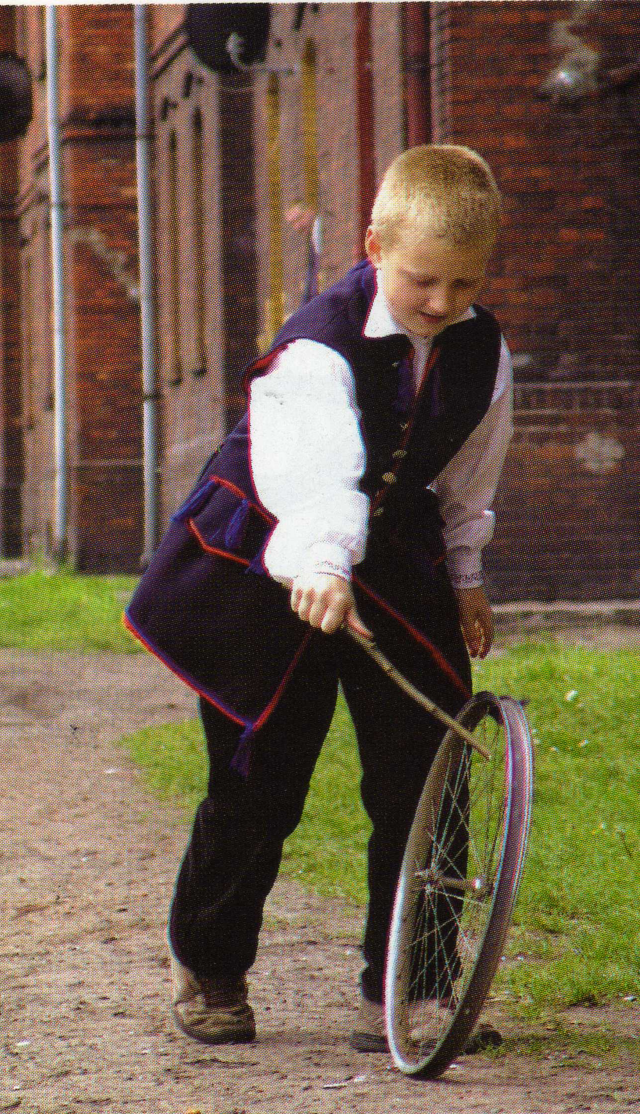 kija lub druta toczyły ją po ścieżkach i drogach. Czasami całymi godzinami kulano felgę. Ważne było, żeby taka